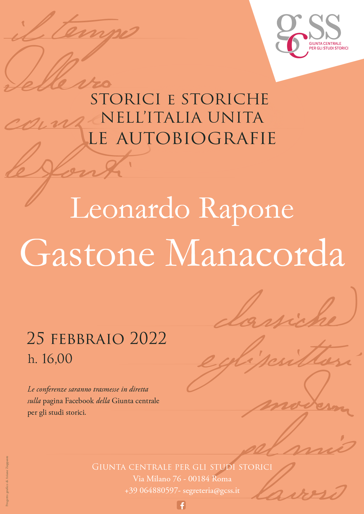 Poiché anche nella storiografia italiana degli ultimi 160 anni molti sono gli autori che hanno lasciato notevoli riflessioni memorialistiche e autobiografiche, la Giunta centrale per gli studi storici intende aprire un cantiere su questo problema, promuovendo, nel 2021 e negli anni successivi, una serie di incontri, ciascuno dei quali sarà incentrato su uno storico italiano attivo dopo il 1861 e autore, in vari modi, di riflessioni autobiografiche. Gli incontri saranno pubblicati come altrettanti numeri di una specifica collana.